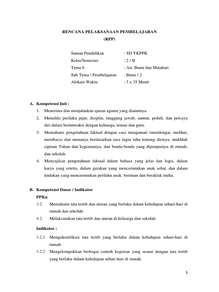 Adapun cakupan lain yang terdapat pada rpp. Indikator digunakan sebagai dasar untuk menyusun alat evaluasi. Kelas 1 semester 2 tema 5 sampai 8 sd/mi revisi terbaru semoga bisa bermanfaat bagi bapak/ibu guru untuk bisa melengkapi administrasi bapak/ibu guru dalam proses belajar mengajar di. Kompetensi dasar dan indikator pencapaian kompetensi berisi kd dan indikator pencapaian kompetensi. Download pemetaan kd pai kelas 6 semester 1.